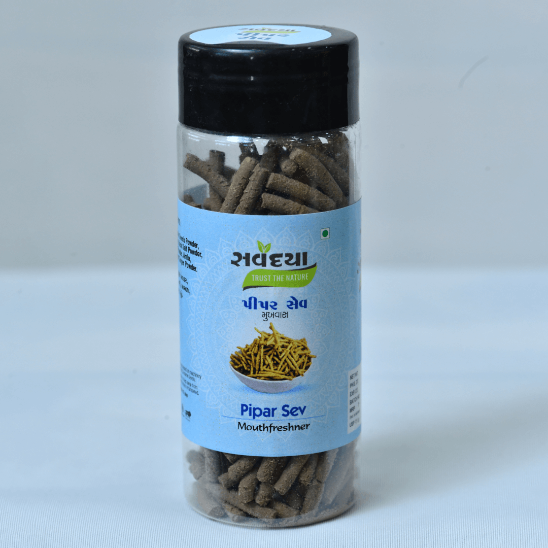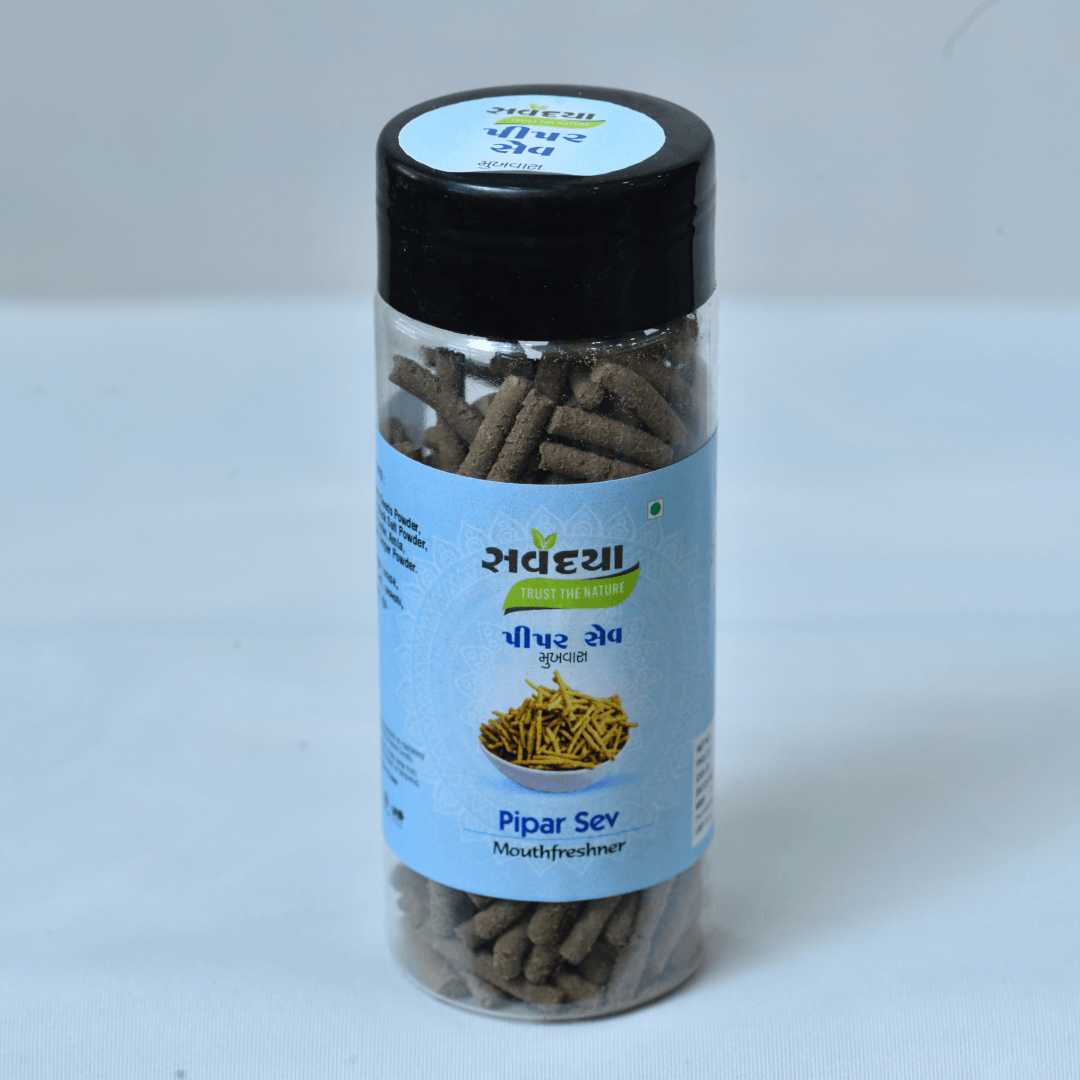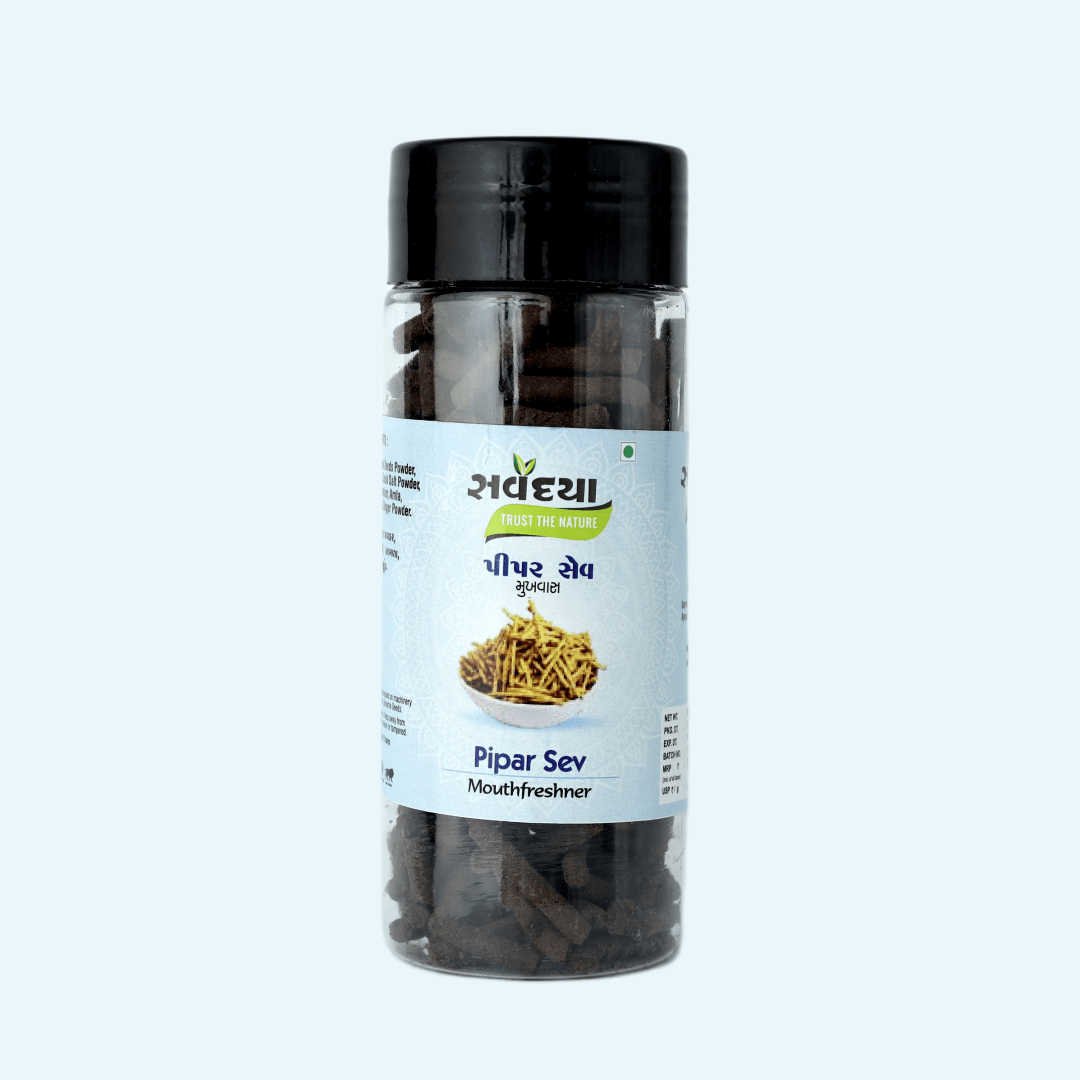Peepar Sev Mukhwas is a bold, spicy mix made with long pepper and aromatic herbs to support digestion and respiratory health. With its crunchy texture and traditional Ayurvedic ingredients, it’s a natural mouthfreshener that’s both flavorful and wellness-boosting.