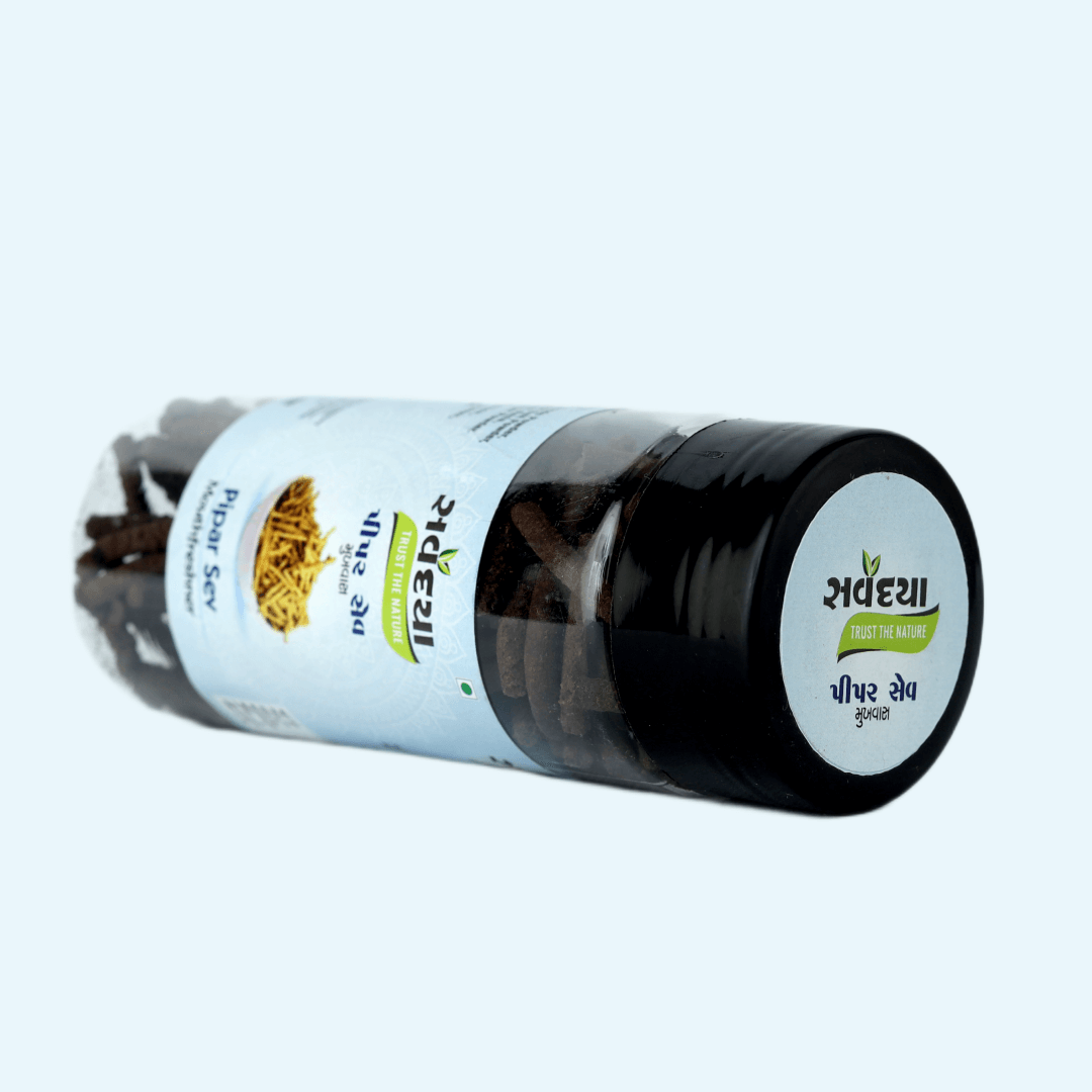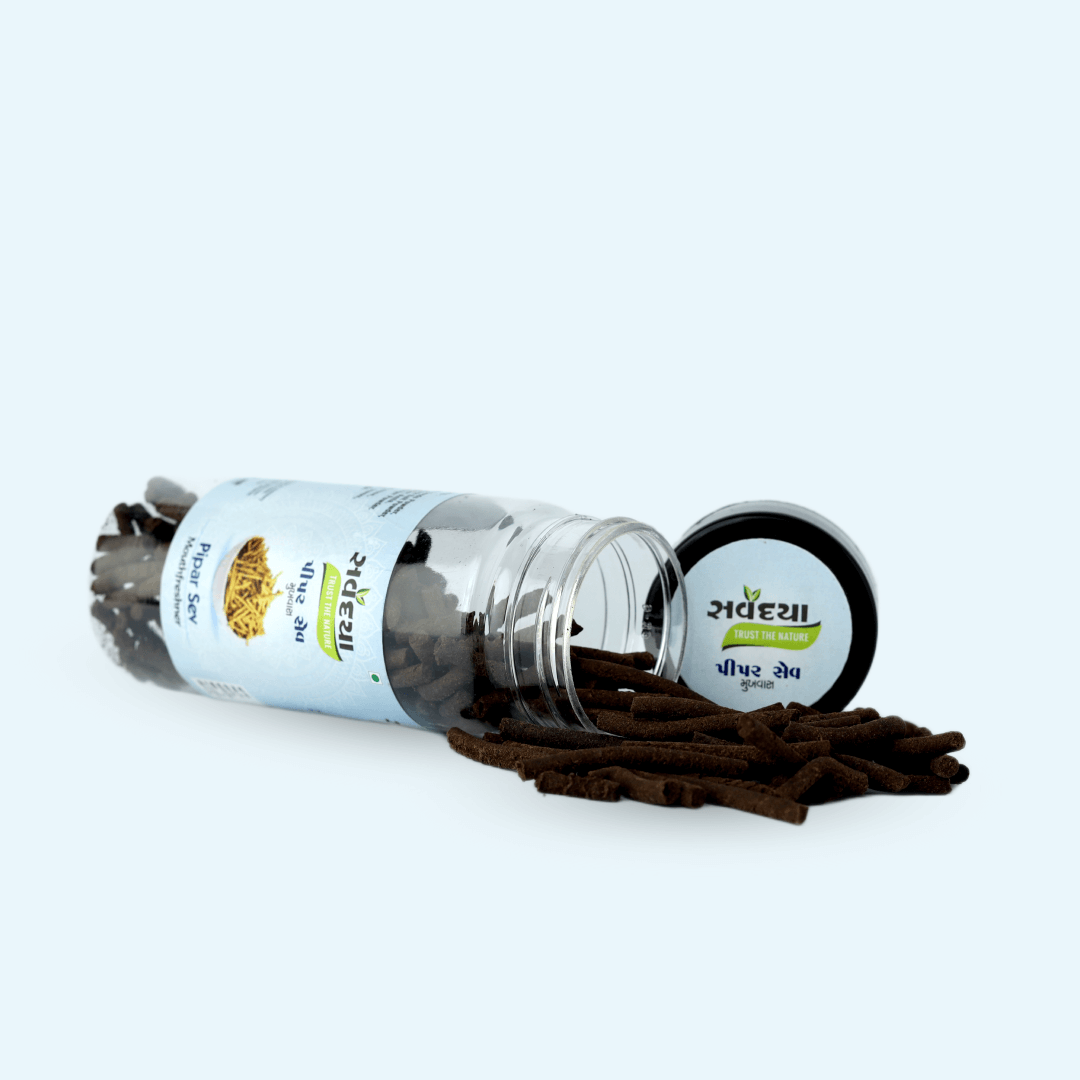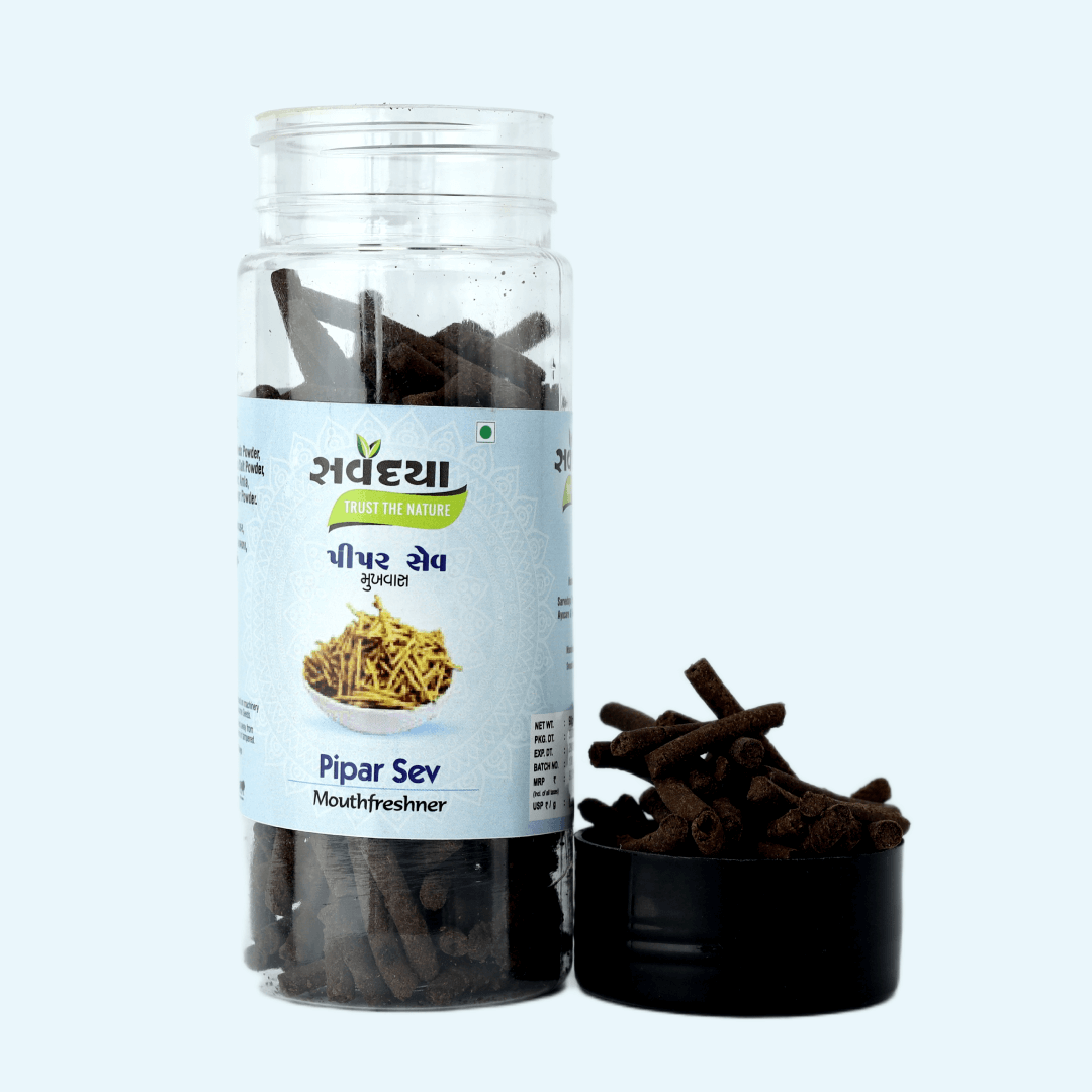 Peepar Sev Mukhwas is a bold, spicy mix made with long pepper and aromatic herbs to support digestion and respiratory health. With its crunchy texture and traditional Ayurvedic ingredients, it’s a natural mouthfreshener that’s both flavorful and wellness-boosting.
