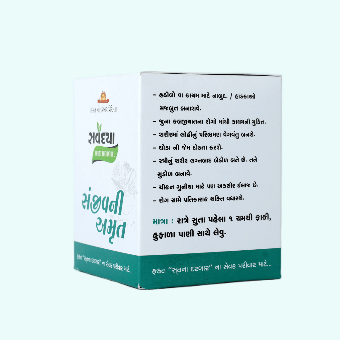 Taken daily, Sanjeevni Amrut supports longevity, sharpens the mind, and energizes the body. It’s a holistic approach to total body wellness—natural, nourishing, and life-enhancing.